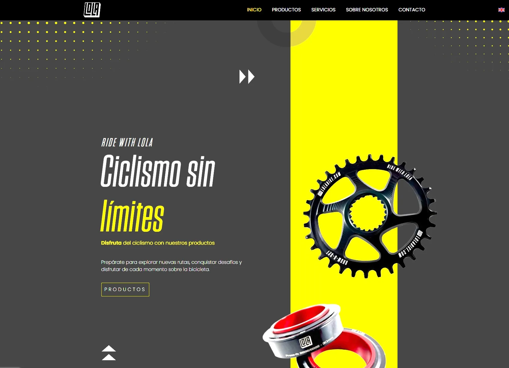 Web corporativa y catálogo de componentes para bicicleta, enfocada en presentar la marca, sus líneas de producto y servicios, con una navegación clara para descubrir el catálogo y contactar rápidamente.
