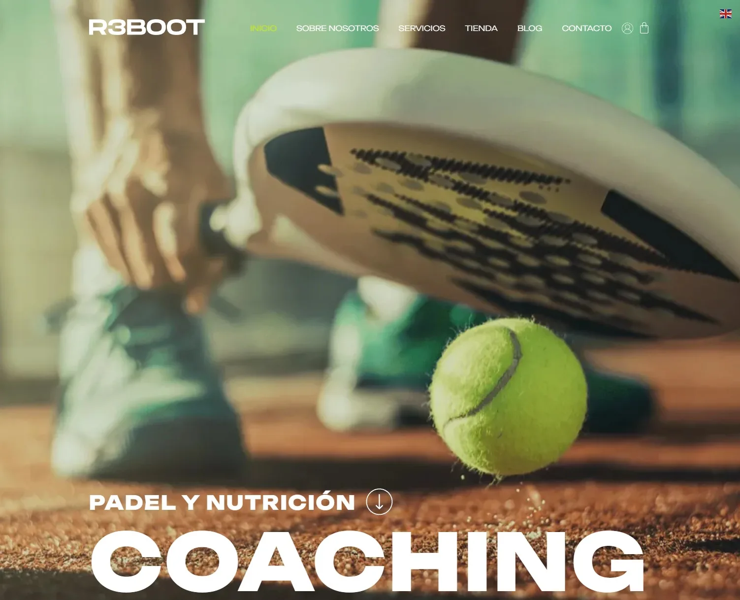 Web corporativa para coaching de pádel y nutrición, con presentación del equipo, servicios, packs y formulario de contacto para captar leads y contrataciones. Y con un sistema de tienda para contrataciones de entrenamiento de padel.